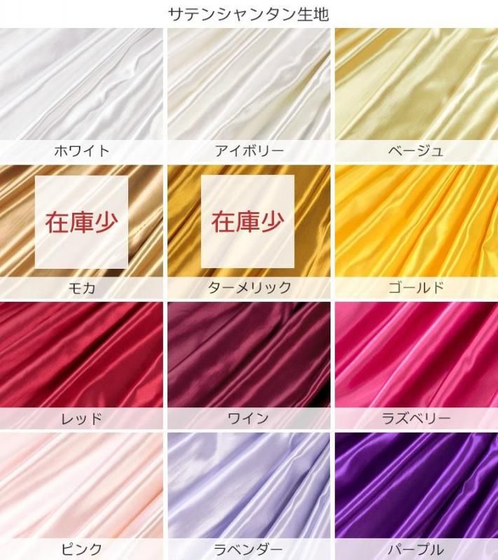 バックサテンシャンタン生地のサテン面を使用。光沢の強いサテン織りで華やかな印象のファブリックです。