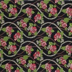 ハワイアンファブリック 黒 ローズ・ピカケレイ柄 fab-2952BK【4yまでメール便可】