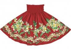 パウスカート 赤 プルメリア柄 spau-rm-2948RD 仕上がり丈約73cm 4本ゴム【既製品】