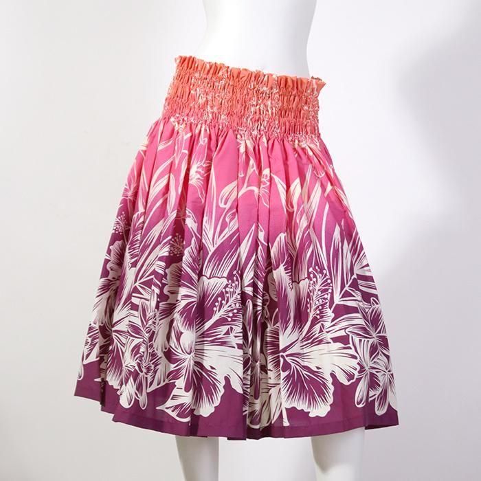 パウスカート 紫とピンク ハイビスカス・グラデーション柄 spau-rm-2958PPPi 仕上がり丈約73cm 4本ゴム【既製品】