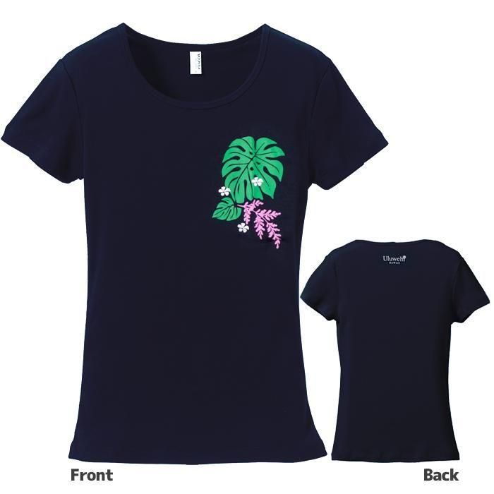 フラダンスTシャツ−Uluwehi hawaii [モンステラ] ネイビー レディース tsht-monstela【1枚までメール便可】