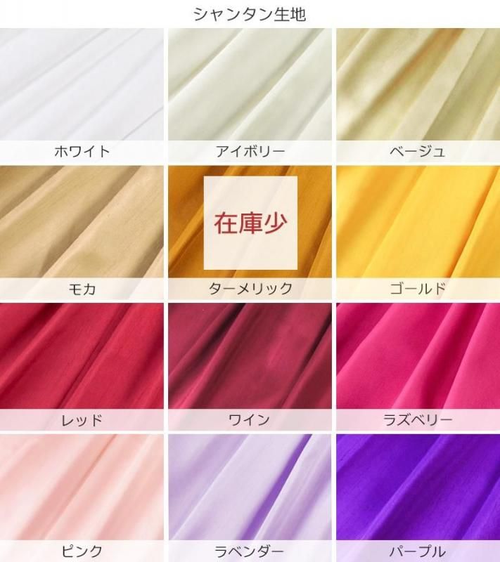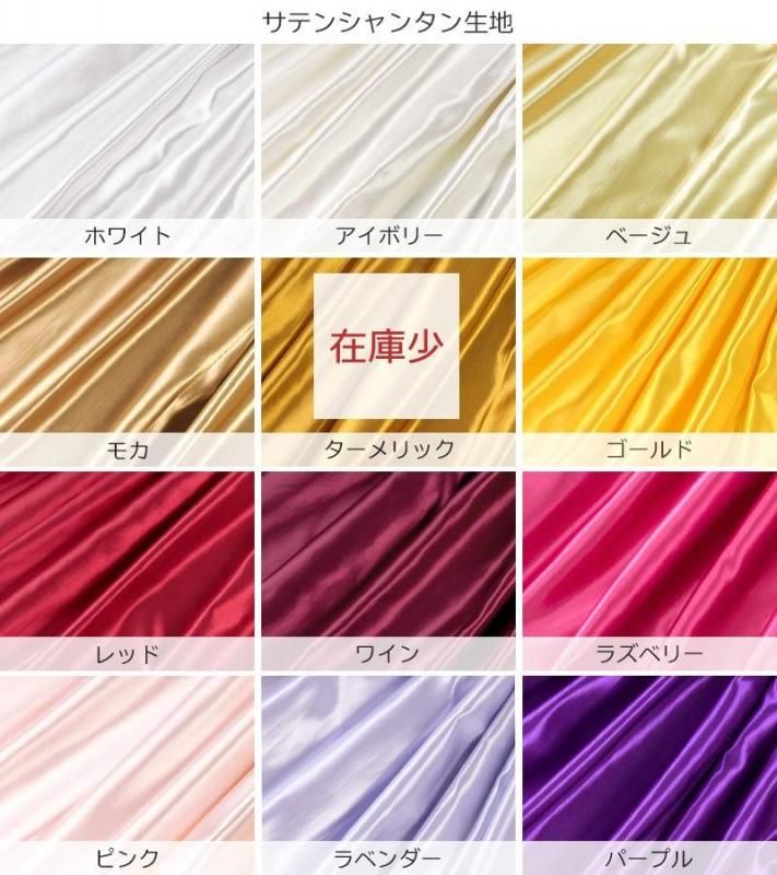 バックサテンシャンタン生地を使用。光沢のある華やかな「サテン織り」、マットで上品な「シャンタン織り」と、表と裏で質感が異なるファブリックです。 サテン・シャンタンどちらの面でもお仕立てができます。