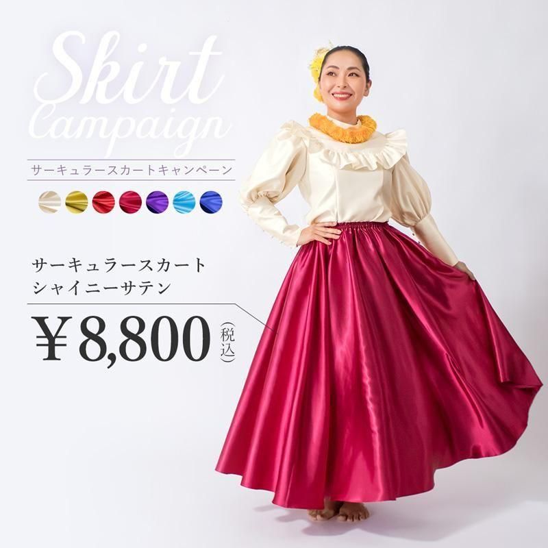 ひらりと軽やか、きらめく輝きの『シャイニーサテン サーキュラースカート』が期間限定の特別価格です!