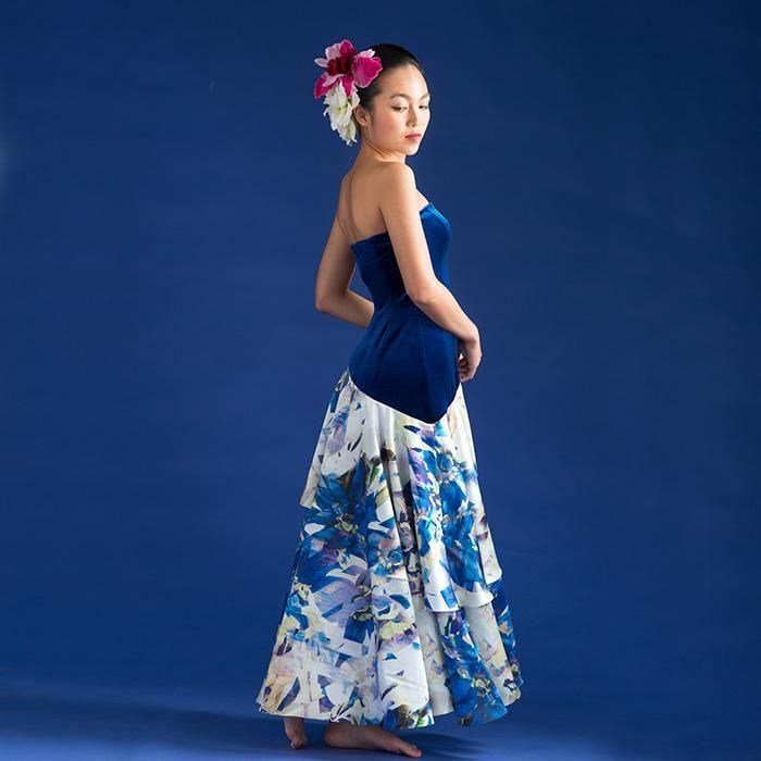 [使用生地]身頃:ベルベット(ブルー)、スカート:サテンプリント