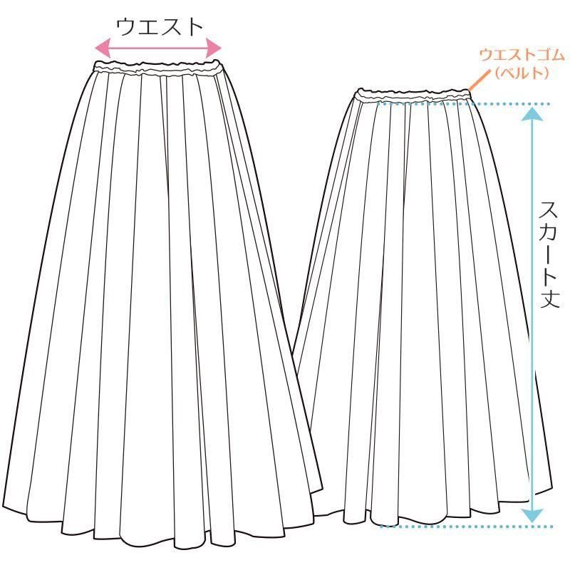 | スカート丈はウエストゴム下より1cm単位でお選びいただけます。 |